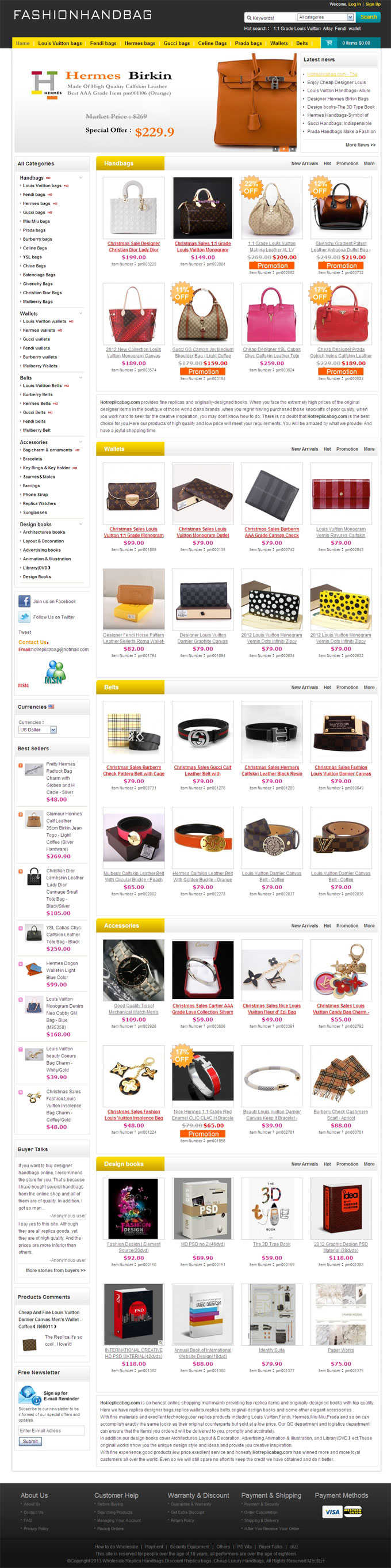 项目名称:Hotreplicabag商城网站建设签定日期:2012年6月2日网址:http://www.hotreplicabag.com/ Hotreplicabag可靠的B2C网上商店,专门销售华丽的时尚单品,试图让你一直渴望你的范围